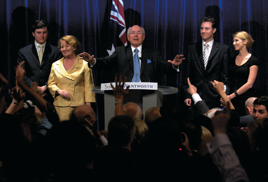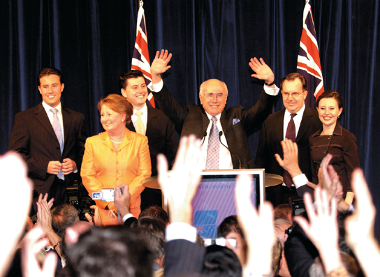 After my victory speech in Sydney on election night 2004. It was the Coalition’s fourth straight win. Unexpectedly, we won control of the Senate.