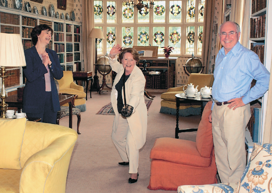 Intervarsity fencer Janette brandishes Cromwell’s sword in the ‘long room’ at Chequers. Cherie Blair and I admire her thrust but keep our distance.