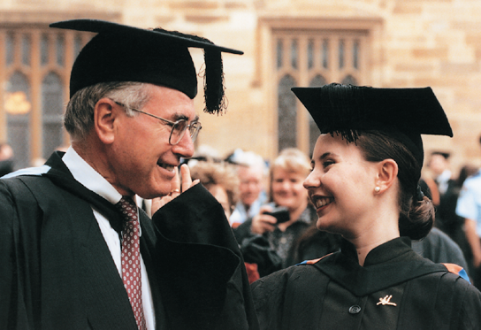 A proud father with his daughter: Melanie at her graduation from Sydney University, May 1996. All of my children took law degrees.