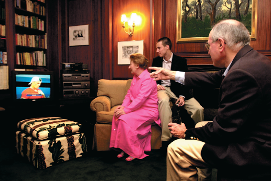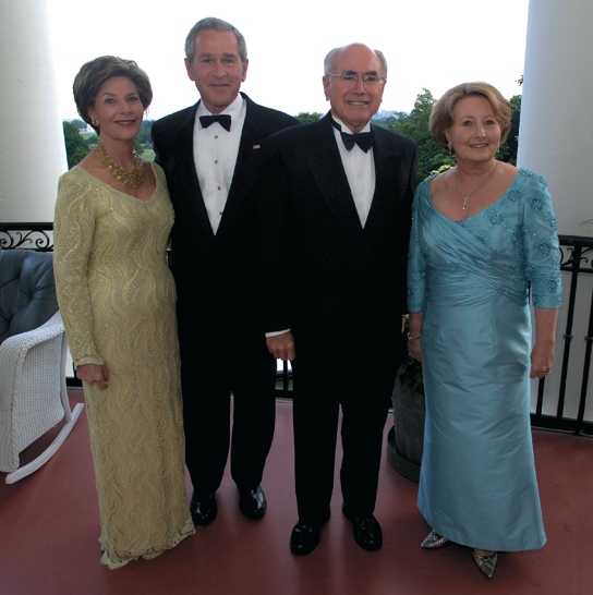 With George and Laura Bush on the verandah of the White House before an official dinner, May 2006.