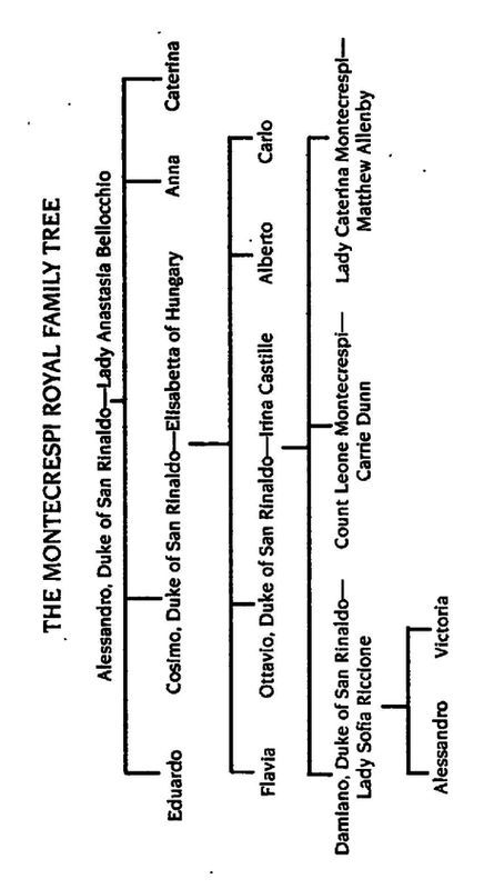 Her eyes flickered over his dark-eyed face with its wide, sensuous mouth, sculpted jawline and strong curved nose—that unmistakable Montecrespi nose, proud, aristocratic, almost hawk-like, which could be seen in the scores of portraits of his ancestors that hung in their gilt frames from the palace walls. Oh, yes, he was undoubtedly the most glorious-looking man.