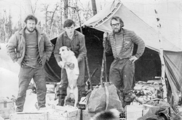 Это фото в виде большой картины в раме много лет украшало нашу квартиру. Папа (в центре) с коллегами на зимних работах