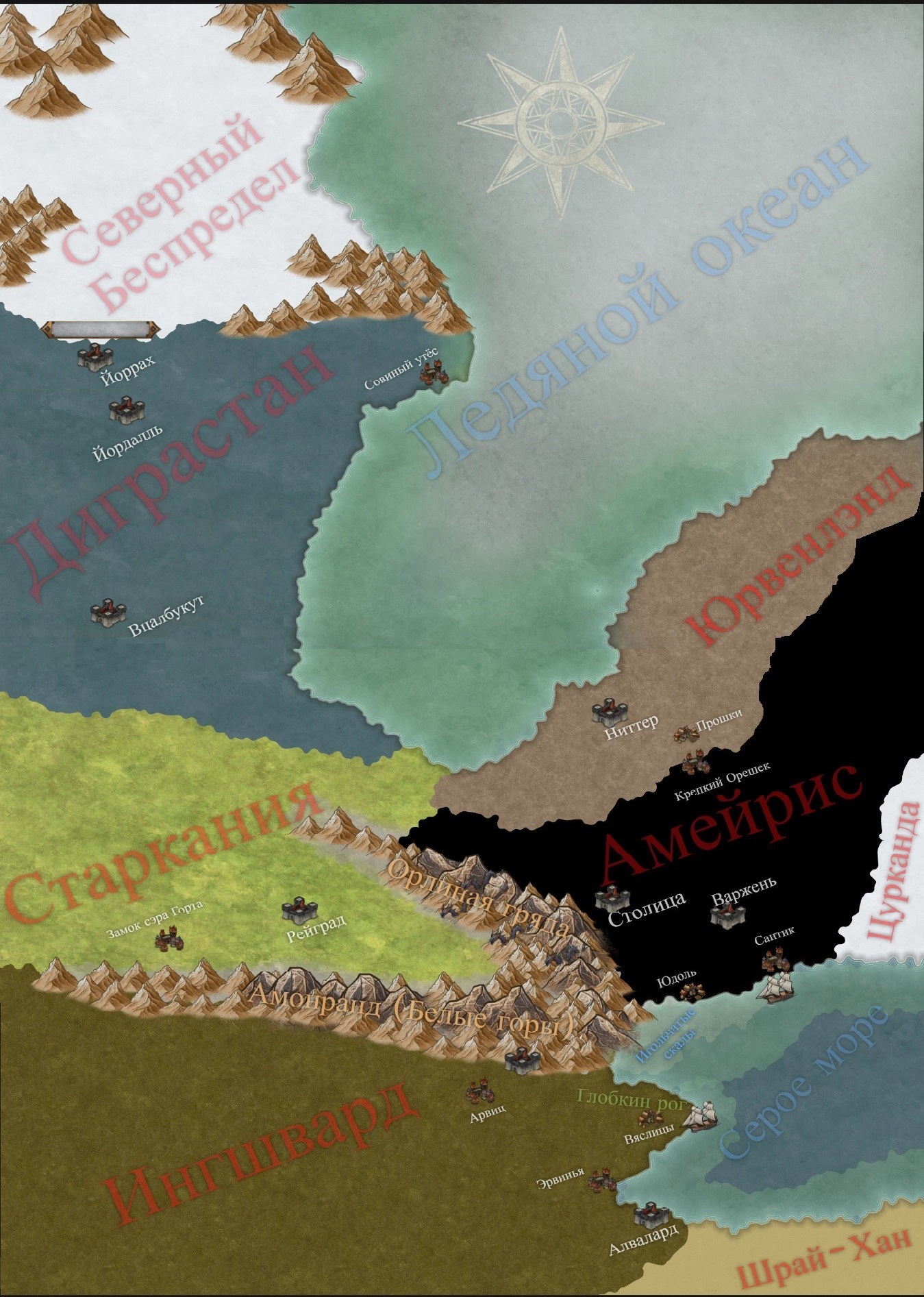 Выход к Серому морю имели аж четыре державы, все, как одна, считающиеся великими: Амейрис, Цурканда, Шрай-Хан и Ингшвард. И город Сантик, находящийся несколько восточнее Юдоли, посещало много торговцев. Самые высокие пики Орлиной гряды ещё различались оттуда, но скрывающиеся под водой Игольчатые скалы уже не грозили пробить дно причаливающим кораблям. Поэтому он и стал центром морской торговли в Амейрисе, хотя даже сухопутные караваны мчались туда, сломя голову. И те, что с запада и с северо-запада, обязательно проходили через Варжень, оставляя практически без внимания стоящий обособленно Юдоль.