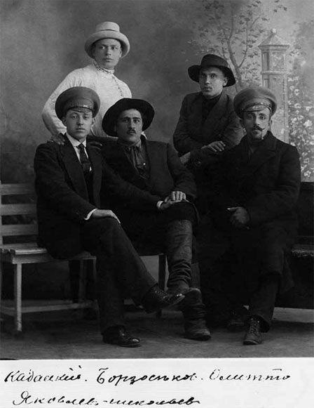 Начало 1916 года совпало с призывом в армию. Отца с группой полтавчан мобилизовали в железнодорожный батальон и направили во Владивосток. Вместе с ним поехали друзья: Кадацкий, Борзосеков, Олитто, Яковлев, Николаев. По прибытии в город Владивосток в мае 1916 года вся великолепная пятерка первым делом сфотографировалась, чтобы выслать карточки своим родным и тем засвидетельствовать свое благополучие. Ехали долго, больше месяца, в холодных «теплушках». Подробности теперь не восстановить, никого из перечисленных людей нет в живых. Одно несомненно: в мужском солдатском вагоне ехала на правах жены одна женщина – моя мама – восемнадцатилетняя Матрена Ивановна Кумпан (в то время уже Христенко).