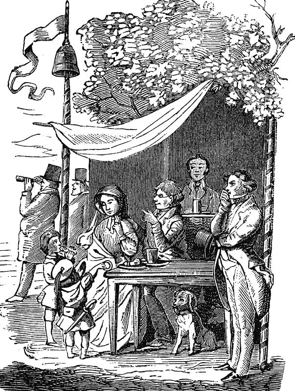 Богатые поехали, а бедные пошли: но дорога показалась им необычайно длинною. Когда достигли опушки, где росли тенистые деревья, то нашли, что здесь очень хорошо, и расположились отдохнуть. Один кондитер раскинул палатку, другой – повесил над своей палаткой колокол. Но колокол этот служил только вывеской. Он был обмазан смолой для защиты от дождя и не имел языка. Возвращаясь домой, публика находила, что в прогулке было очень много поэзии, что гулящие углубились в лес, прошли его насквозь и постоянно слышали звон колокола. Но там им казалось, что он звучал со стороны города. Один сложил даже песню, в которой сравнивал странный звук с обращением матери к любимому дитяти. Мелодия к этой песне подделывалась под колокольный звон.