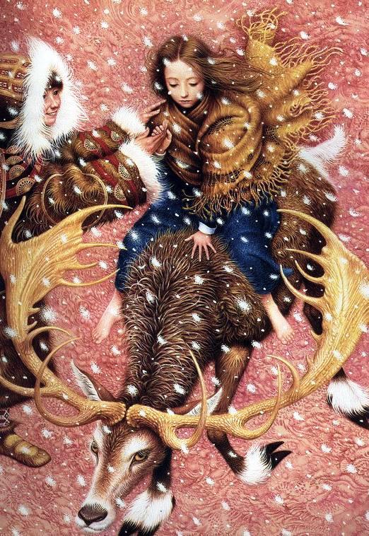 – Она полетела, наверно, в Лапландию, – там ведь вечный снег и лёд! Спроси у северного оленя, что стоит тут на привязи!