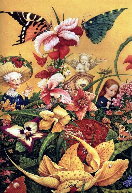 Дверь была заперта лишь на задвижку; Герда дёрнула ржавый засов, он подался, дверь отворилась, и девочка так, босоножкой, и пустилась бежать по дороге! Раза три оглядывалась она назад, но никто не гнался за нею. Наконец она устала, присела на камень и огляделась кругом: лето уже прошло, на дворе стояла поздняя осень, а в чудесном саду старушки, где вечно сияло солнышко и цвели цветы всех времён года, этого не было заметно!