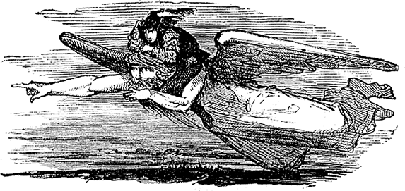 На заре принц проснулся, и ему сразу стало жутко; оказалось, что он уже летит высоко-высоко под облаками! Он сидел на спине у Восточного ветра, и тот добросовестно держал его, но принцу все-таки было боязно: они неслись так высоко над землею, что леса, поля, реки и моря казались нарисованными на огромной раскрашенной карте.