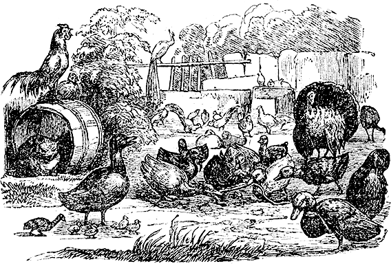 Скоро добрались и до птичьего двора. Батюшки! Что тут был за шум и гам! Две семьи дрались из-за одной угриной головки, и в конце концов она досталась кошке.