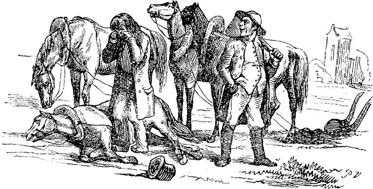 Потом он снял с лошади шкуру, высушил ее хорошенько на ветру, положил в мешок, взвалил мешок на спину и пошел в город продавать шкуру.