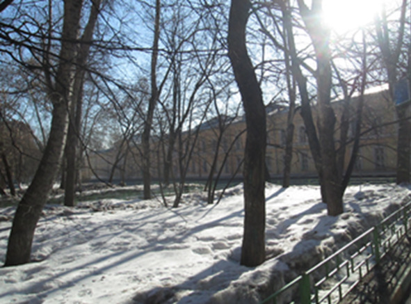 Слева видны флигели дворца Алексея Кирилловича Разумовского, который был построен еще в 1810 году. Одно время думали, что Казаковым. Потом передумали и подозревают кого-то из престижных в те времена императорских зодчих.