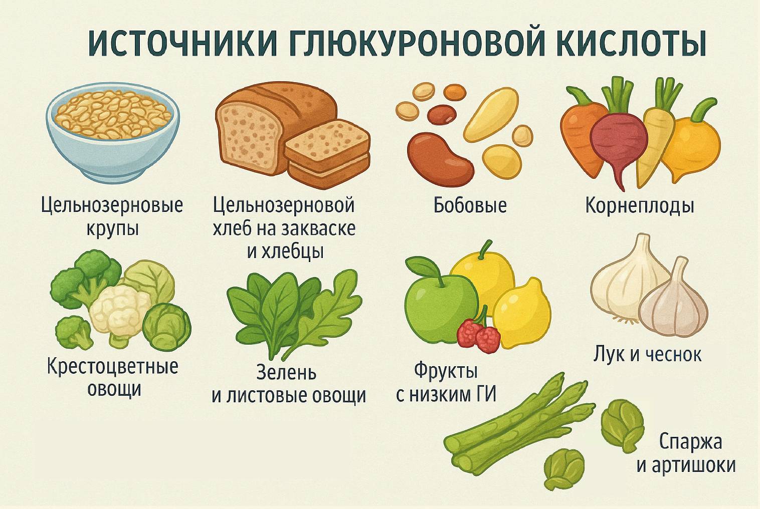 Ниже представлена таблица с основными источниками глюкуроновой кислоты и практическими рекомендациями по их включению в рацион.