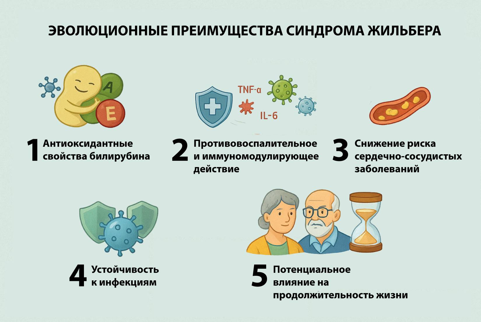 Рисунок №7 «Доказанные эволюционные преимущества синдрома Жильбера».
