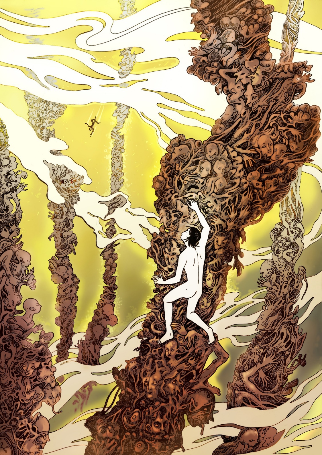 Небо сейчас грязно желтое, столь «густого» темного цвета. И на его фоне куда не кинешь взгляд – Башни, сплошные Башни тянутся ввысь к этому желтому небу. И по ним ползут, цепляясь, сползая, а порой и падая люди. Изредка мы встречаемся взглядами на мгновение, и взбираемся дальше, ввысь. У кого-то Башни ниже моей, у кого – то же столь громадны, что их вершина теряется в дымке.