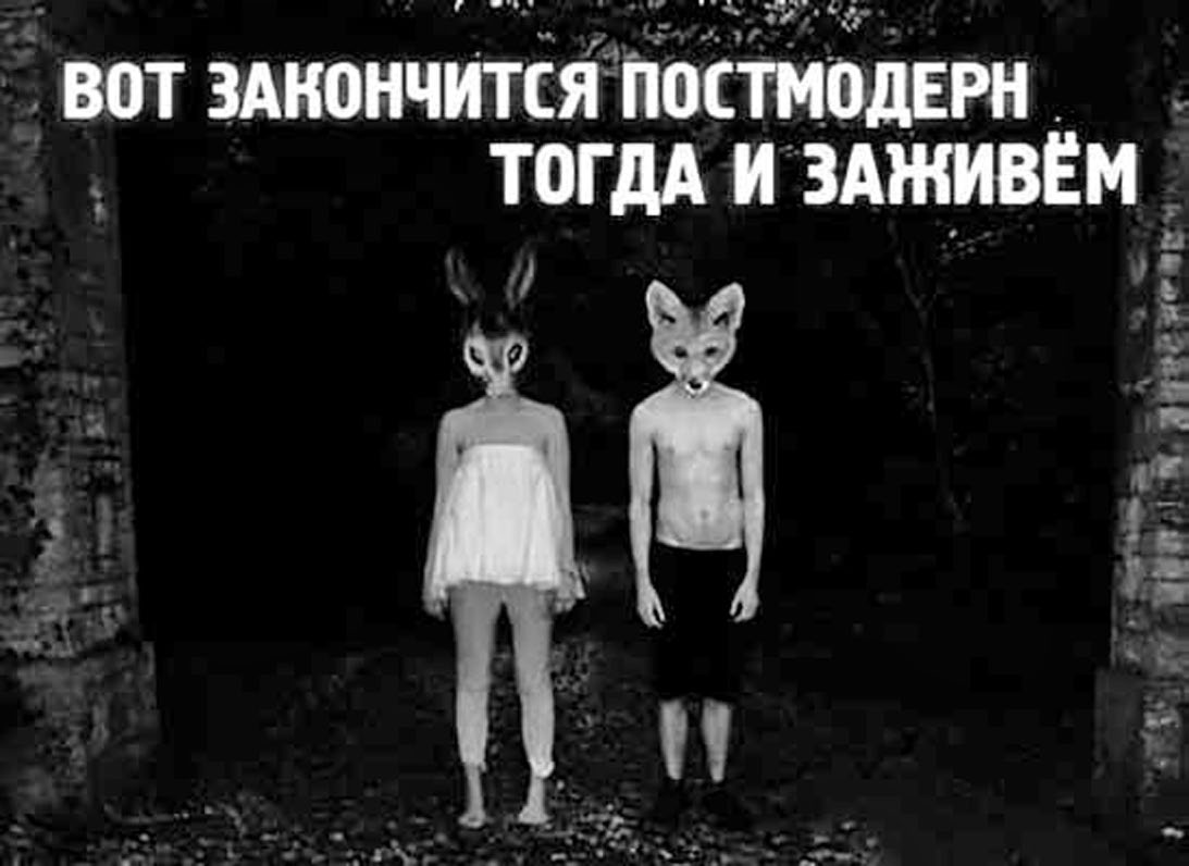 что«Вот закончится постмодерн – тогда и заживем» – этот интернет-мем казался смешным, когда верилось, что эпоха постмодерна в силу самой своей природы не закончится никогда. Но сегодня это уже не смешно.