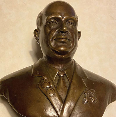 Осенью 2020 года я неожиданно нашла сразу двух «прадедушек». Одного в районе Лубянки, рядом с памятником русскому первопечатнику Ивану Федорову. Другого на Старом Арбате. «Есть ли бюст Хрущева?» – почти для проформы спросила я у арбатского продавца и с удивлением получила положительный ответ. Дружелюбный молодой человек в ядовито-желтой шапке-ушанке с военной звездой скрылся в чреве магазина и достал с темной пыльной полки бронзового первого секретаря, помеченного 1965 годом.