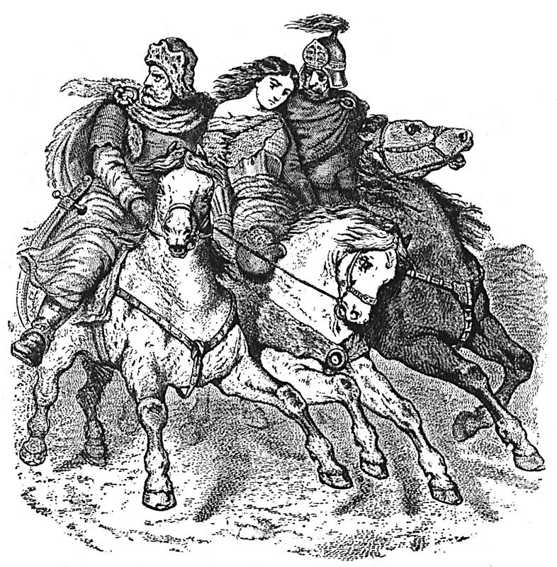 – Я здесь! Отец, спаси, спаси меня! – крикнула несчастная и сделала страшное усилие, но всё напрасно; могучей рукой вскинул её рыцарь на седло и дал шпоры коню.