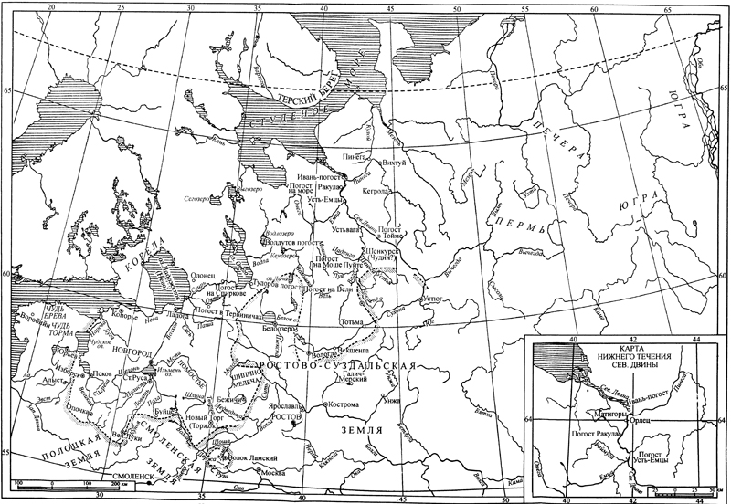 Новгородская земля в XIII в. Границы указаны схематически.