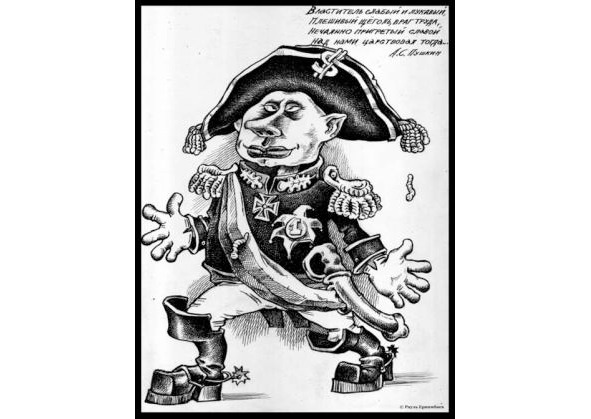Ода ничтожествам (Медведев, Путин и К)Служит ширмой и портьерой,Называется – премьером.Шагом, рысью и в карьерОн готов, как пионер —Позабавиться часами,Поразвлечься поясами,В русле власовских традицийНаградить страну полициейИ без повода галдёж…Ну, убогий, что возьмёшь?