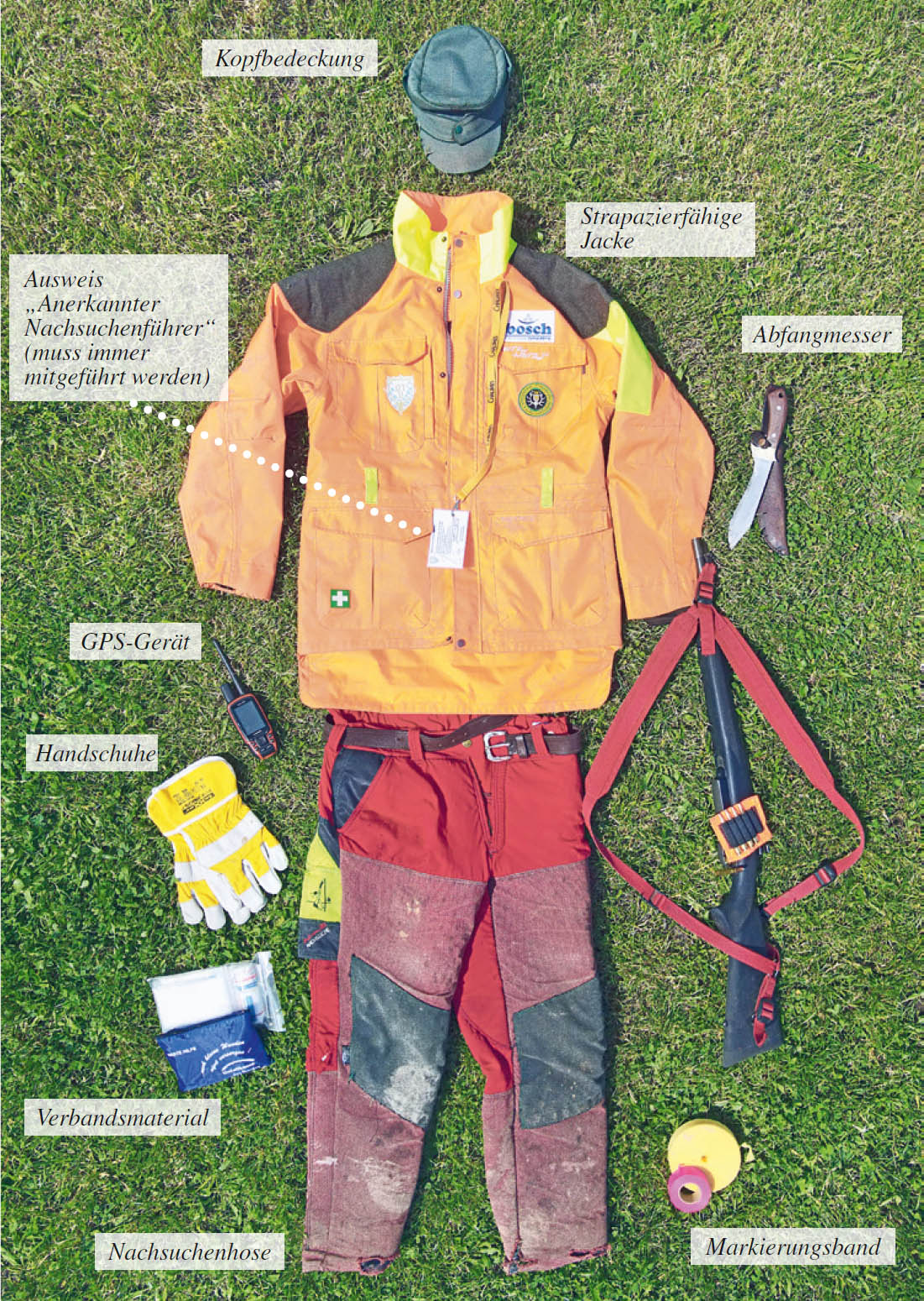 Für den praktischen Nachsucheneinsatz werden Sie Ihre Ausrüstung so weit optimieren, dass es für Sie und Ihren Hund passt und damit Sie beide wieder gesund nach Hause kommen. Das, was ich hier beschrieben habe, kann und soll nur ein roter Faden sein, an dem Sie sich entlanghangeln können. Sie werden Ihre eigenen Erfahrungen sammeln und erkennen, was für Ihren Einsatz sinnvoll ist und was Sie überhaupt nicht gebrauchen können. Das ist es nämlich, was einen Nachsuchenführer ausmacht: aus seinen eigenen Erfahrungen zu lernen.