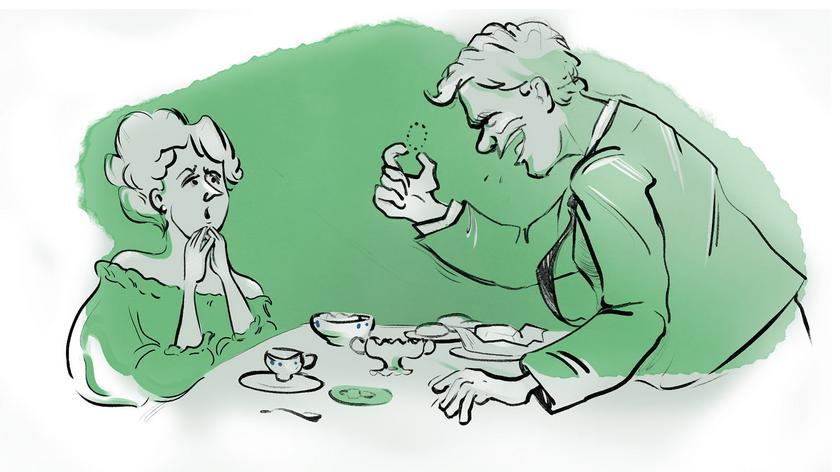 – Я тоже вина хочу, – сказала девочка, крутя в руках пластмассовую зелёную солонку.