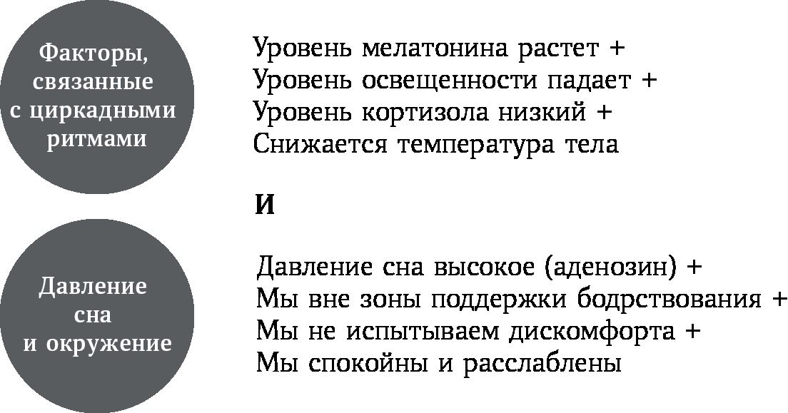 Таким образом, лучшее время ложиться спать – когда давление сна высокое, а циркадные ритмы посылают нашему организму правильные сигналы, например: