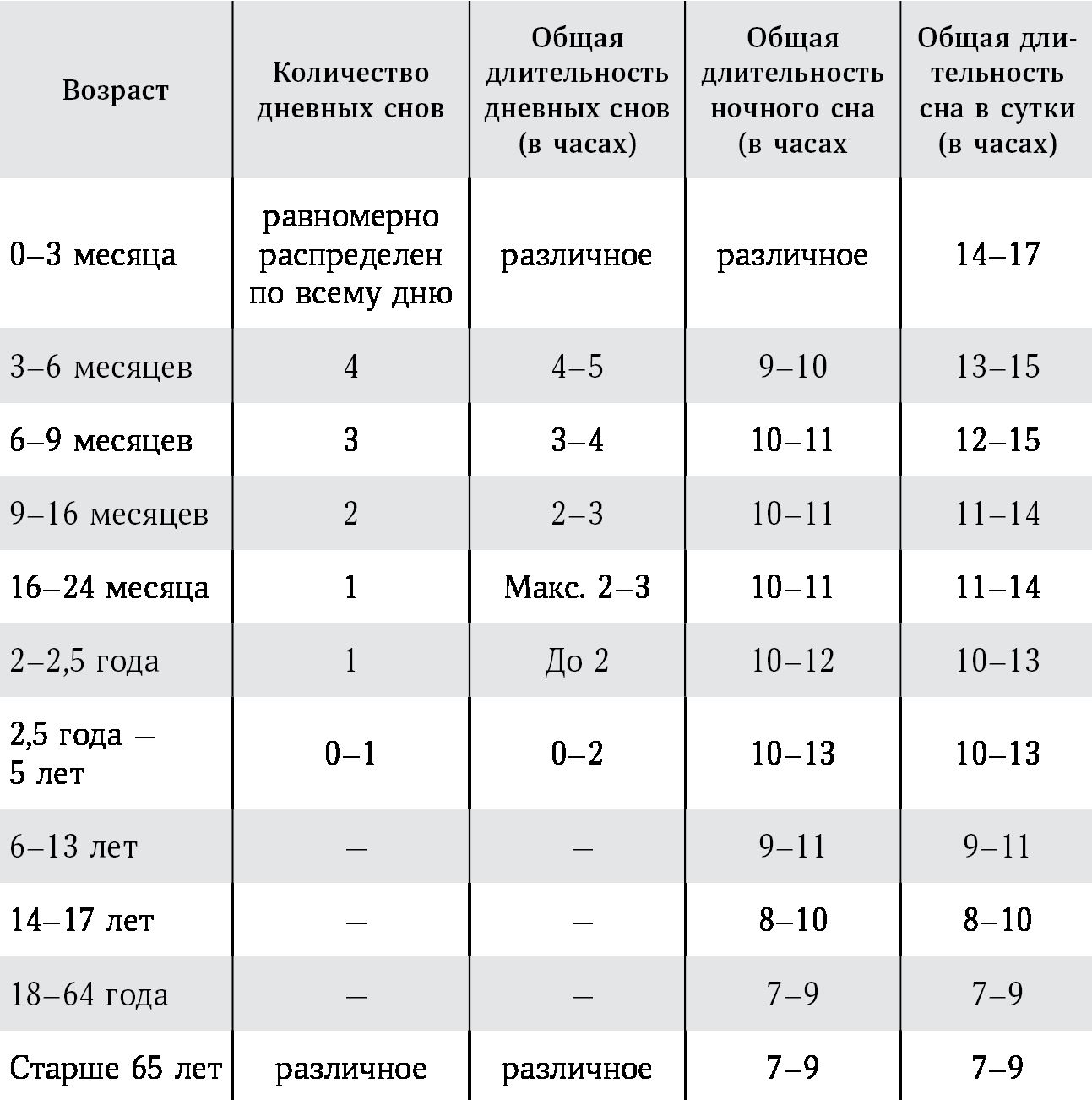 Пожалуйста, помните: несмотря на то что таблица основана на данных обширных исследований, потребности детей в сне значительно различаются, особенно это касается дневного сна. Так что если ваш ребенок спит достаточное количество часов в сутки, но дневные сны совсем не соответствуют этой таблице, – не волнуйтесь. Вы в хорошей компании, уверяю вас!