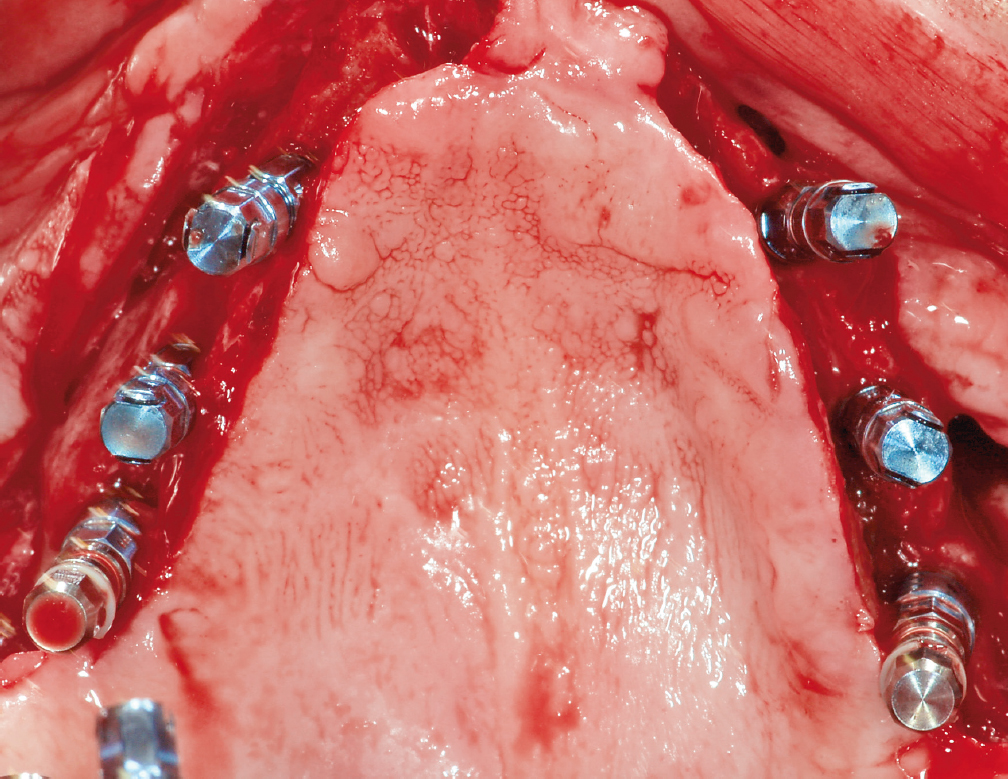 Abb. 2 Die bakterielle Kontamination von Knochenaugmentaten kann bei intraoralen Eingriffen kaum vermieden werden. Ein ausreichender perioperativer Antibiotikaspiegel ist daher zur Infektionsprophylaxe ratsam (Bild aus23).