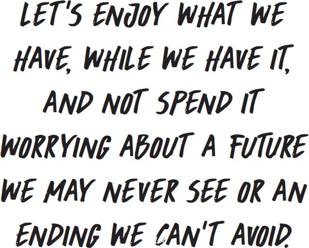 Regardless, the lights will be going out in all of us, and that’s not a choice. However, HOW we feel about that IS a choice. Let’s enjoy what we have, while we have it, and not spend it worrying about a future we may never see or an ending we can’t avoid.