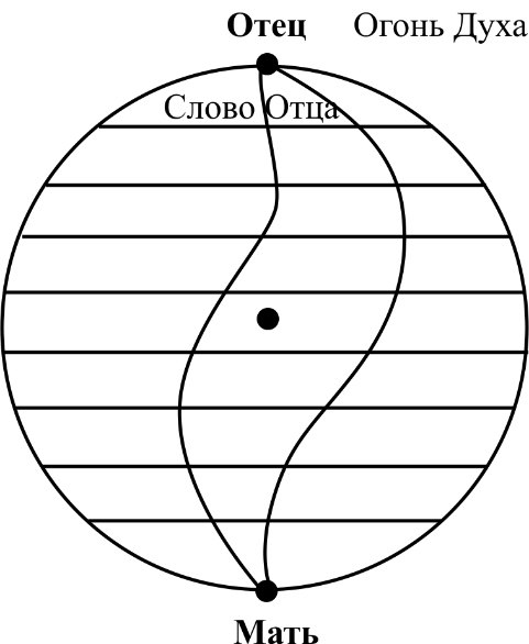 Примерно это видится и мыслится вот так (рис. 4). Вот это Дом Отца, он состоит из 9-ти частей. Вот 9 Смыслов, 9 планов, 9 тел, 9 уровней. А теперь представьте, что каждый этот элементик даёт какой-то свой эффект. Вот здесь есть северный полюс – Отец и южный – Мать. И вот из северного идёт одна граница и другая.