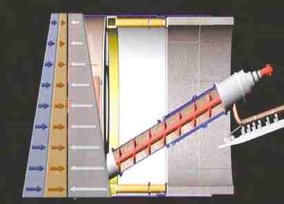 2. Когда шлаковый грунт заполняет призабойный отсек и полости шнека, с помощью толкающего усилия гидроцилиндров продвижения щита производится давление на шлаковый грунт, тем самым создается уравновешивание давления грунта и грунтовых вод забоя.