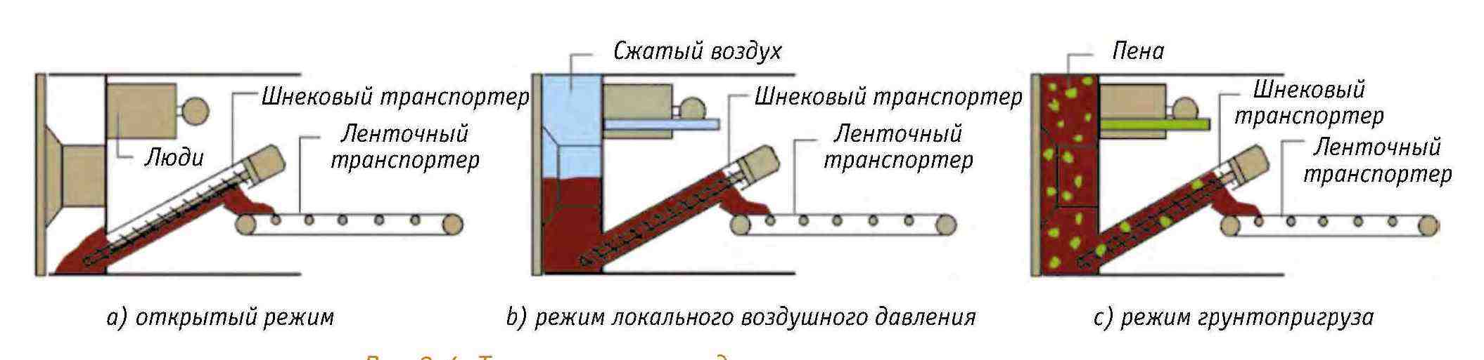 Рис.3-4. Три режима проходки щита с грунтопригрузом