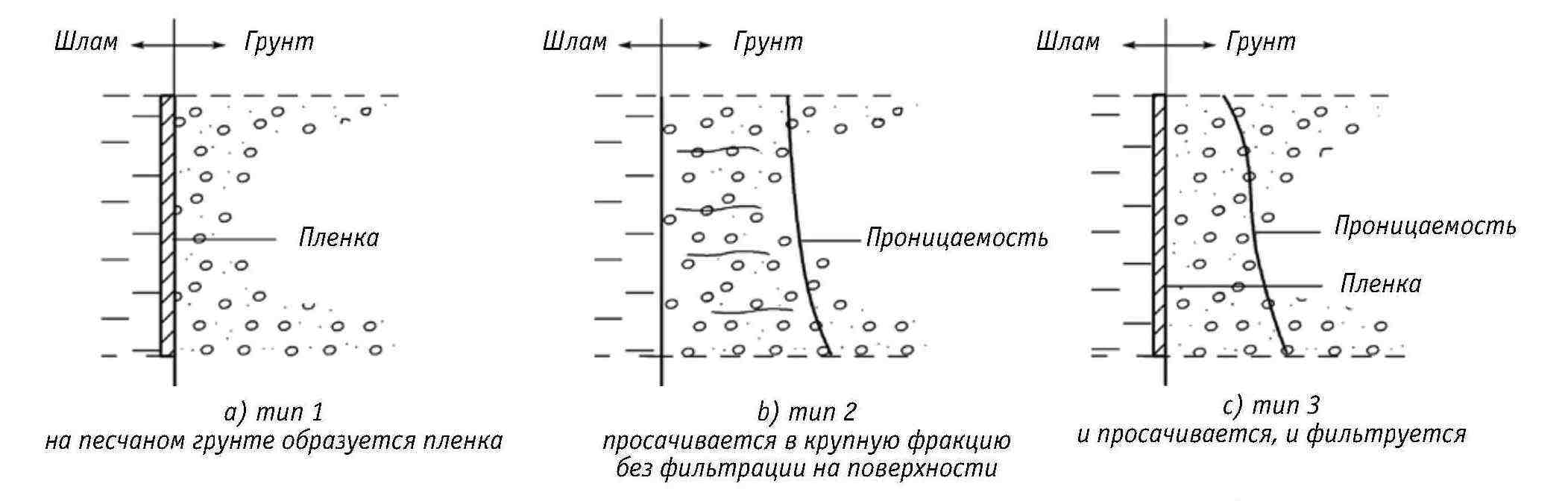 Тип 2-й: при больших порах в почве шламовая жидкость полностью проникает внутрь, не формируя на поверхности глинистую пленку.