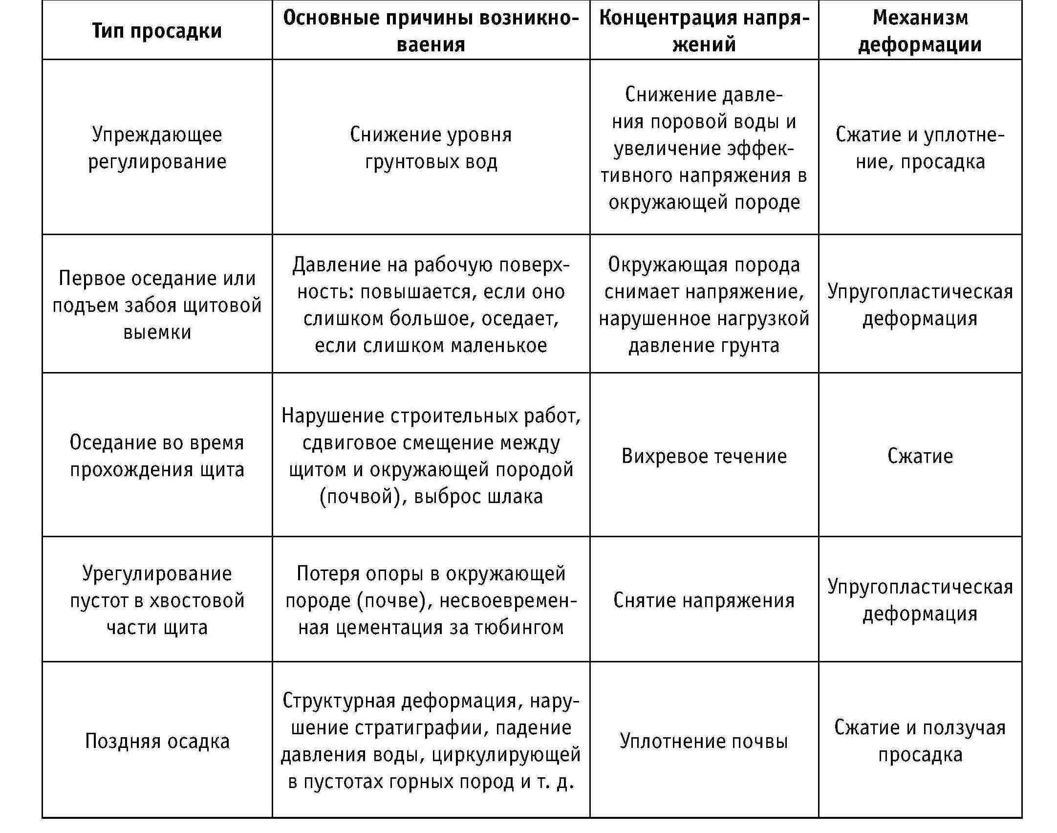 Таблица 3-5. Причины и механизмы деформации, вызванные щитовой конструкцией