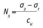 Вертикальное давление над туннелем оказывает значительное влияние на оседание грунта. Broms & Bennermark предлагает выразить легкость строительства туннеля и степень смещения грунта в терминах коэффициента устойчивости Ns. В пластичных глинистых грунтах, когда глубина туннеля не меньше удвоенного диаметра туннеля, то есть z ≥ 2ч.