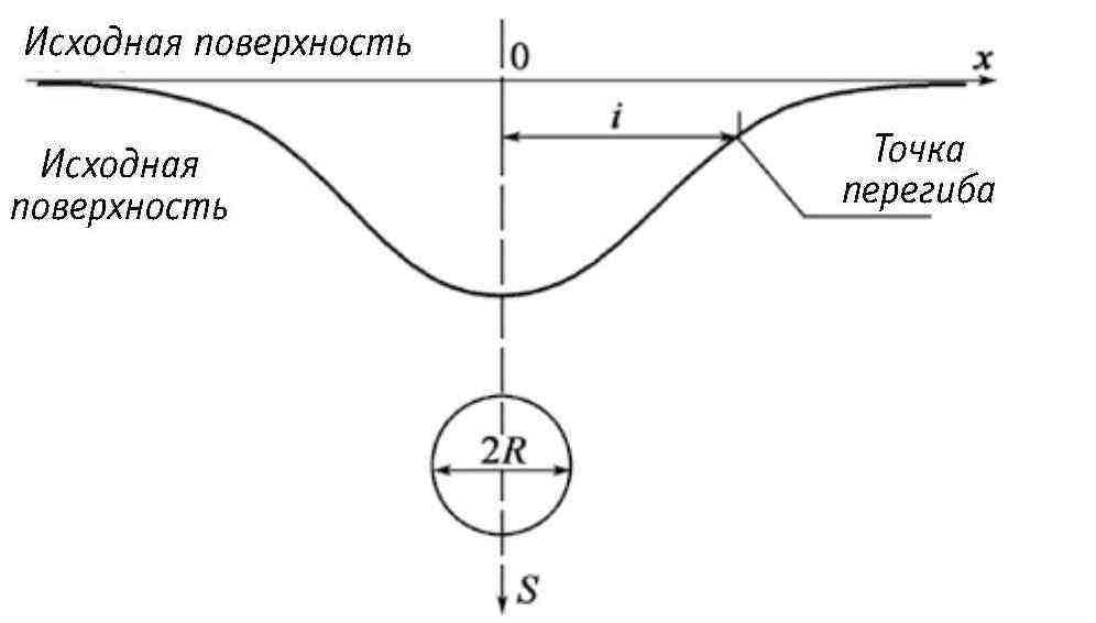 S max – степень просадки поверхности земли относительно центральной оси туннеля;