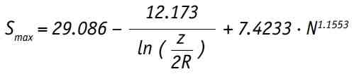 Aттвелл внес корректировки в коэффициент ширины i, предложил коэффициент ширины впадины поперечного оседания i, зависящий от прочности пласта вблизи поверхности земли, глубины залегания туннеля и радиуса туннеля, что можно приближенно записать как: