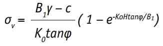 В зависимости от расположения туннеля и условий основания вертикальное давление грунта может быть либо полным давлением вскрышных пород, либо давлением рыхлого грунта. Как правило, толщина вскрышных пород больше наружного диаметра туннеля, поэтому в случае песчаных или твердых вязких грунтов используется давление рыхлого грунта; в других пластах, где невозможно получить арочный эффект грунта, используется общее давление вскрышных пород. Для расчета давления рыхлого грунта обычно используются размеры, показанные на рис. 4.10, и формула Терзаги.