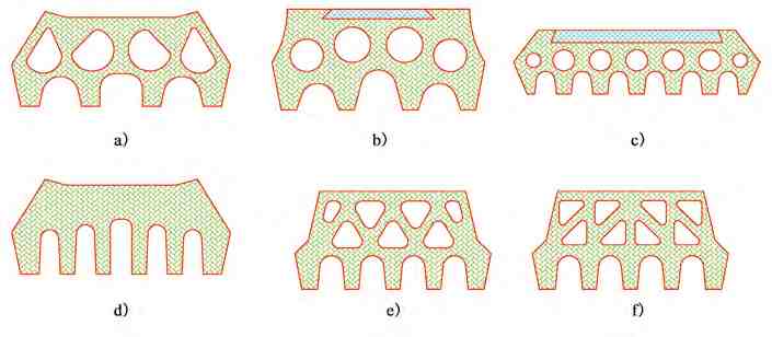 В последние 10 лет в Китае проводилось большое количество исследований о количестве и размере отверстий в прокладках, форме отверстий и прокладки (зубчатая или незубчатая). Однако построение теоретической системы еще не завершено, и при проектировании в основном используют имеющийся инженерный опыт, цифровое моделирование и результаты практических испытаний. Наиболее часто используемые формы уплотнительной прокладок в Китае представлены на рис. 4-14.