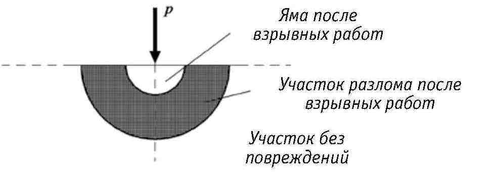 Зона разрыва также называется зоной повреждения. Когда величина ударной силы стержневых резцов меньше силы сопротивления породы, в породе возникает множество повреждений. Под ударной силой появляются и расширяются трещины. При достижении определенных размеров они соединяются, и происходит раскол породы.