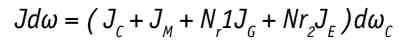 Правую часть уравнения можно получить отдельно от момента количества движения каждой вращающейся части: