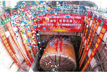 Китайский самостоятельно разработанный и изготовленный проходческий щит с гидропригрузом большого диаметра «Цзинь Юэ» с независимыми правами интеллектуальной собственности успешно реализовал проект по перекладке туннеля шанхайской дороги Дапу (рис. 1-51), и с тех пор Китай вошел в число стран с независимыми технологиями проектирования, производства и строительства проходческого щита с гидропригрузом большого диаметра.