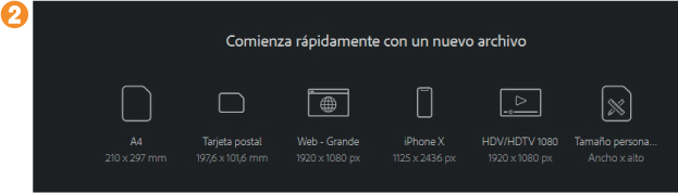 2. Tras unos segundos, Illustrator se abre y muestra, por defecto, su pantalla de inicio. Desde esta pantalla podemos crear rápidamente nuevos documentos en distintos formatos predeterminados 2 o abrir diseños existentes. Trataremos la creación de nuevos documentos en un ejercicio posterior. Además, en la sección Formación 3 de la pantalla de inicio encontrará una serie de tutoriales que le ayudarán a empezar a trabajar con el programa y a hacerse una idea de todo cuanto puede conseguir con él. Las novedades de la versión instalada también se pueden consultar desde esta pantalla de inicio. Más adelante le mostraremos todo cuanto puede aprender gracias a estos recursos.