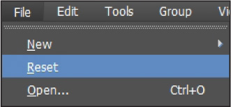 1. Para asegurarse de que empieza el ejercicio sin ninguna característica del programa diferente a las establecidas por defecto, es conveniente que se acostumbre a reiniciar el entorno cada vez que empieza un archivo nuevo. Para ello, despliegue el menú File, pulse el comando Reset y, en el cuadro de confirmación que aparece, pulse el botón Yes.