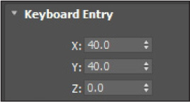 3. Primero situaremos la caja y luego indicaremos sus dimensiones. Despliegue la persiana Keyboard Entry, escriba el valor 40 en los campos X e Y. Para pasar de un campo a otro, puede pulsar la tecla Tabulador o hacer clic dentro de ellos, seleccionando en este caso el contenido.