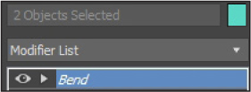 9. Ahora el modificador se aplicará sobre ambos objetos. Despliegue la lista de modificadores y localice y seleccione el denominado Bend.