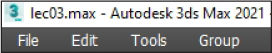 16. ¡Felicidades! Acaba de crear su primera escena con 3ds Max. Para guardar la escena, despliegue el menú File y seleccione el comando Save.