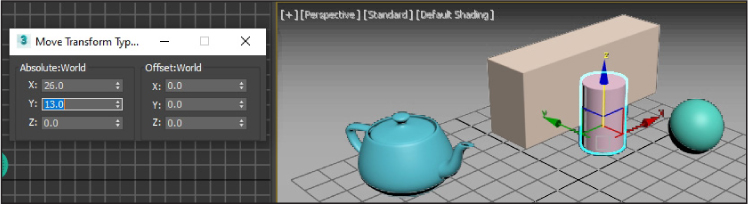 11. Escriba en el campo X de la columna Absolute:World del cuadro Move Transform Type-In el valor 26, el valor 13 en el campo Y y el valor 28 en el campo Z.