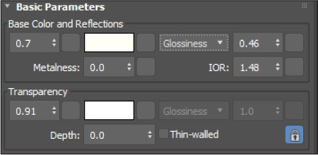 10. Vamos a asignar un valor de transparencia al material predeterminado. Asigne aproximadamente el valor 0.9 en el campo Transparency en los parámetros básicos.