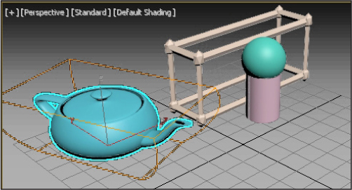 1. Continuaremos esta lección donde dejamos la anterior. Vamos a realizar modificaciones en todos los objetos para obtener una mejor composición. Para empezar, rotaremos ligeramente la tetera. En primer lugar, hay que activar la herramienta Select Object con la que seleccionaremos el objeto que vamos a modificar. Pulse sobre dicha herramienta, representada en la barra de herramientas Main Toolbar por una flecha sobre un cubo.